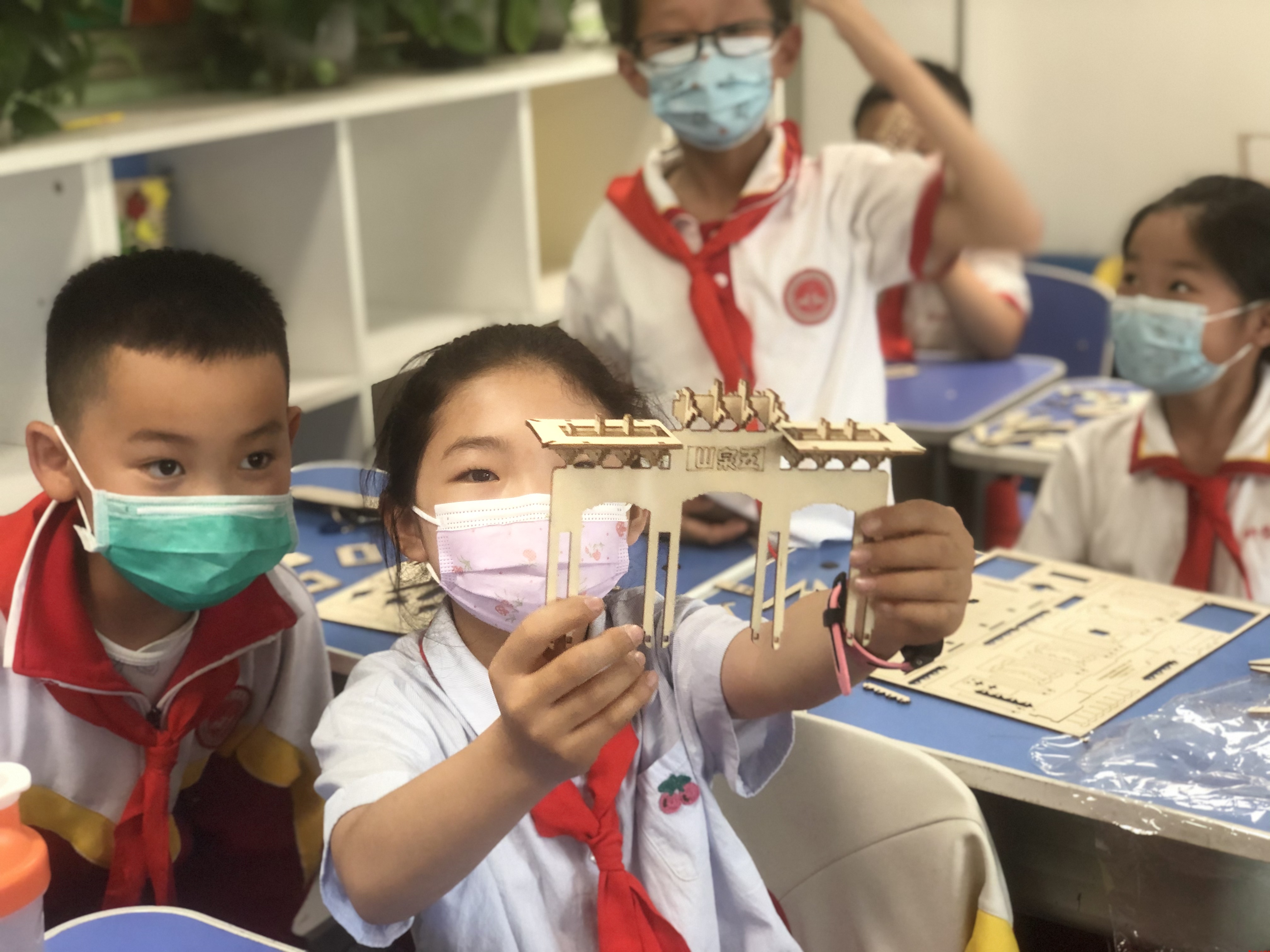 為了讓學(xué)生們更直觀了解斗拱,我們專(zhuān)門(mén)帶來(lái)了斗拱模型以及蘭州特有的古建筑結(jié)構(gòu)“五泉山”大門(mén)的模型,讓同學(xué)們近距離的觸摸,自己動(dòng)手感受用榫卯拼插而成的斗拱,從而讓大家進(jìn)一步了解斗拱卯榫的神奇結(jié)構(gòu)以及古代勞動(dòng)人民的勤勞與智慧。